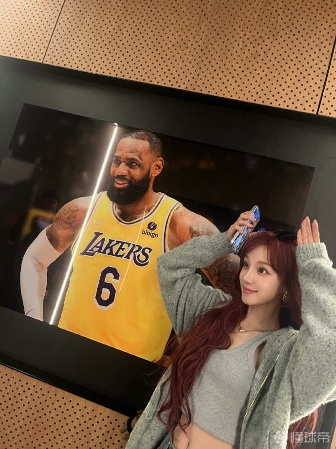 3月2日,国内知名女子偶像宋雨琦前往洛杉矶湖人队的主场,为湖人队加油,为自己的偶像詹姆斯助威。