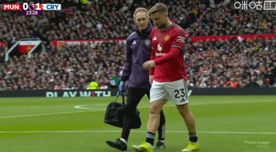 第22分钟,卢克·肖坐在地上,此前他脚部被踩了一下,无法继续坚持比赛,第24分钟被马兹拉维换下。